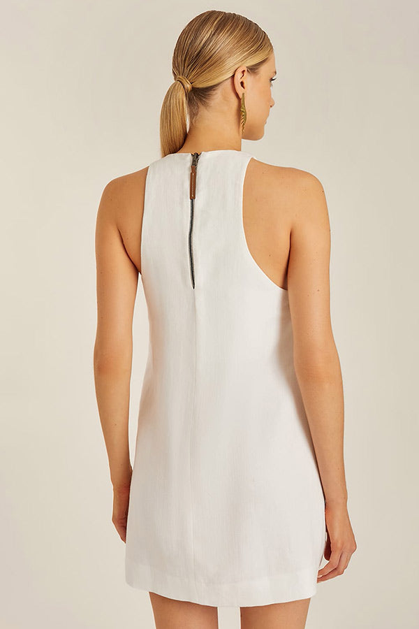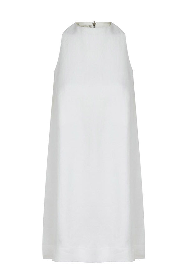 Vestido corto, con escote alto y redondeado, sin mangas y sisa americana. El cierre de cremallera en la parte trasera asegura un ajuste impecable.